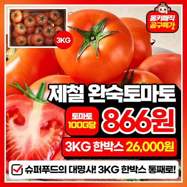 슈퍼푸드!! 과즙 팡팡~ 완숙 찰 토마토 3KG